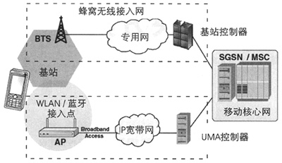 UMA是一種使用ISM頻段的,由英國電信等電信運營商起草的新GSM無線接入方式。UMA借助ISM頻段相關(guān)技術(shù)將移動終端接入 GSM/GPRS核心網(wǎng),進而使用各項GSM/GPRS服務(wù)。UMA網(wǎng)絡(luò)能夠與現(xiàn)有無線接入網(wǎng)絡(luò)(GERAN,GSM EDGE Radio Access Network)共存,互不影響,還能夠通過信息交互,實現(xiàn)移動終端在兩種網(wǎng)絡(luò)間的漫游切換。