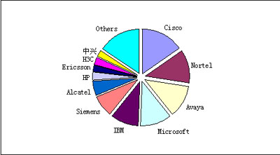 各大通信與IT廠商都在厲兵秣馬,充分挖掘企業(yè)的自身優(yōu)勢(shì),準(zhǔn)備在潛力巨大的統(tǒng)一通信市場(chǎng)中取得良好戰(zhàn)績。賽迪顧問數(shù)據(jù)顯示,2008年上半年,中國統(tǒng)一通信市場(chǎng)中,Cisco公司以15.3%的市場(chǎng)份額繼續(xù)保持領(lǐng)頭樣的位置,在通信設(shè)備領(lǐng)域,Nortel和Avaya分別以12.1%和11.7%的市場(chǎng)份額緊隨其后。值得一提的是Microsoft和IBM以其在全球獨(dú)一無二的終端用戶,迅速占領(lǐng)統(tǒng)一通信軟件市場(chǎng),無論是市場(chǎng)份額還是整體競(jìng)爭力都成績不俗,且增長勢(shì)頭強(qiáng)勁。各大廠商短時(shí)間的涌入,使得統(tǒng)一通信市場(chǎng)出現(xiàn)了前所未有的群雄逐鹿的局面,競(jìng)爭異常激烈。