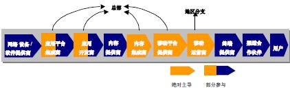 和記電訊十分重視其在產(chǎn)業(yè)鏈的角色定位,并致力于產(chǎn)業(yè)鏈后端的構(gòu)建,即將重點放在與用戶直接接觸的界面上。目前,其已經(jīng)成功地構(gòu)建起自己獨特的系統(tǒng),成為服務(wù)提供的堅實后盾。