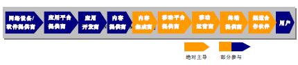 和記電訊是香港最大的流動網(wǎng)絡(luò)運營商。2004年1月,和記電訊率先在香港推出世界級的3G服務(wù)。其目標就是成為最佳的3G移動通信多媒體通信運營商。和記電訊在產(chǎn)業(yè)鏈上承擔的角色如圖3所示。