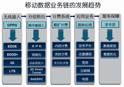 圖1 移動數(shù)據(jù)業(yè)務鏈的發(fā)展趨勢