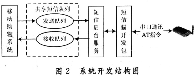 基于開(kāi)發(fā)周期及成本的考慮,本系統(tǒng)采用開(kāi)發(fā)包形式。短信貓開(kāi)發(fā)包是針對(duì)目前常用短信模塊開(kāi)發(fā)的短信應(yīng)用API集合,具有成熟穩(wěn)定、支持多種語(yǔ)言、高可靠性等特點(diǎn)特點(diǎn)。系統(tǒng)開(kāi)發(fā)結(jié)構(gòu)圖如圖2所示。