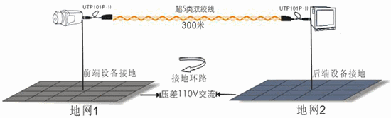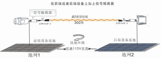第二種方案是使監(jiān)控傳輸上的設(shè)備各點(diǎn)的相對地的電勢相同,一種方法是用一根導(dǎo)線把前端設(shè)備與后端設(shè)備的地連起來,但導(dǎo)線本身也存在電阻,效果并不是非常好,并且還需另外布線,增加了工程的復(fù)雜性;第二種方法是采用屏蔽的雙絞線,可是必然會(huì)對視頻信號有損耗,從而縮短傳輸距離。