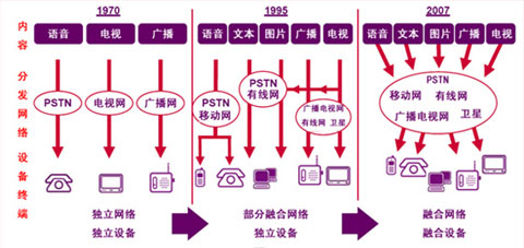 2010年1月13日,國務(wù)院常務(wù)會議決定加快推進(jìn)電信網(wǎng)、廣播電視網(wǎng)和互聯(lián)網(wǎng)三網(wǎng)融合。5年內(nèi)全面實(shí)現(xiàn)電信網(wǎng)、廣播電視網(wǎng)和互聯(lián)網(wǎng)三網(wǎng)融合,并明確提出階段性目標(biāo)和重點(diǎn)工作。