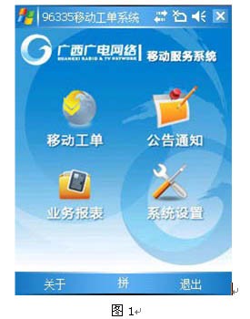 移動(dòng)工單系統(tǒng)是數(shù)字電視客戶呼叫中心平臺(tái)系統(tǒng)的延伸,它結(jié)合最新的網(wǎng)絡(luò)移動(dòng)技術(shù),實(shí)現(xiàn)數(shù)字電視服務(wù)工單分派業(yè)務(wù)的自動(dòng)流轉(zhuǎn)和實(shí)時(shí)流轉(zhuǎn),各地市維護(hù)站的服務(wù)工作人員通過智能手機(jī)終端,實(shí)時(shí)獲取工作任務(wù)、計(jì)劃安排,進(jìn)行業(yè)務(wù)處理,通過移動(dòng)網(wǎng)絡(luò)查詢客戶信息、查詢用戶產(chǎn)品訂購資料,上報(bào)處理結(jié)果和用戶反饋信息,通過移動(dòng)網(wǎng)絡(luò)提交到管理部門,管理層能及時(shí)的掌握服務(wù)進(jìn)展情況,并能隨時(shí)做出決策和指揮,真正實(shí)現(xiàn)對(duì)用戶最快速、有效的服務(wù)需求響應(yīng),保證了服務(wù)質(zhì)量和用戶滿意度,提升了數(shù)字電視的服務(wù)水平與服務(wù)檔次。其界面如圖1所示。