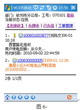 包括數(shù)字電視報(bào)修工單、數(shù)據(jù)專網(wǎng)報(bào)修工單、業(yè)務(wù)營銷工單、投訴工單、需求建議工單。界面如圖6所示!