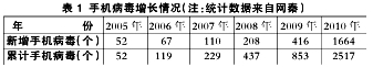 移動智能終端與移動應(yīng)用商店在向用戶提供豐富多彩的應(yīng)用軟件和數(shù)字內(nèi)容的同時,智能終端病毒、應(yīng)用軟件吸費(fèi)、非法信息傳播等安全問題不斷暴露。移動智能終端已經(jīng)成了病毒發(fā)威的新戰(zhàn)場,手機(jī)僵尸、給你米等手機(jī)病毒破壞終端功能,惡意吸取資費(fèi),竊取用戶隱私,極大地?fù)p害了用戶利益。據(jù)網(wǎng)秦統(tǒng)計,2010年新增的手機(jī)病毒數(shù)是2004~2009年手機(jī)病毒總數(shù)的近兩倍(見表1),預(yù)計共感染手機(jī)800萬部以上。據(jù)報道,我國至少有10家Android平臺的吸費(fèi)SP或渠道公司,抽樣顯示近40%的Android常見應(yīng)用程序被植入惡意吸費(fèi)代碼。在信息內(nèi)容安全方面,包含色情暴力、反動言論等信息的應(yīng)用軟件曾出現(xiàn)在App Store中,危害青少年健康成長,影響社會穩(wěn)定團(tuán)結(jié)。2010年10月,美國杜克大學(xué)等對30款A(yù)ndroid應(yīng)用進(jìn)行分析,發(fā)現(xiàn)其中有三分之二的應(yīng)用通過分享用戶地理定位數(shù)據(jù)或信息的方式侵犯用戶隱私,半數(shù)應(yīng)用未經(jīng)用戶允許將用戶地理定位信息發(fā)送給廣告網(wǎng)絡(luò)或數(shù)據(jù)分析公司。我國還存在智能手機(jī)終端內(nèi)置應(yīng)用軟件和第三方應(yīng)用軟件涉黃或吸費(fèi)、手機(jī)WAP網(wǎng)站涉黃等問題。另外,黑莓獨(dú)特的加密技術(shù)引發(fā)擔(dān)憂,德國等紛紛要求監(jiān)控黑莓通信服務(wù)。