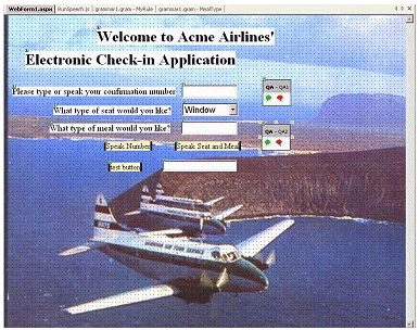 .NET Speech SDK是使用融語音及圖像等為一體的界面來構(gòu)筑Web應(yīng)用的開發(fā)環(huán)境。與該公司的開發(fā)工具--“Visual Studio .NET”配合使用。據(jù)微軟稱,其特點(diǎn)是即使開發(fā)人員不具備語音界面方面的特殊知識(shí)也能使用。比如,上圖就是正在使用.NET Speech SDK開發(fā)的可進(jìn)行語音及鍵盤輸入的窗口。文字輸入框右邊的小框是使用SALT(語音應(yīng)用語言標(biāo)簽)語音相關(guān)命令的標(biāo)記。目前,在支持語音功能的Web應(yīng)用的開發(fā)中,必須使用面向圖形和面向語音的兩種開發(fā)工具。“我們的目的是提供一個(gè)使用一種工具就能開發(fā)包括圖形和語音的多種界面的環(huán)境”(該公司負(fù)責(zé).NET Speech技術(shù)的市場營銷經(jīng)理James Mastan)。
