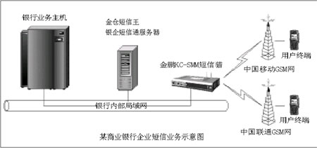 2004年7月,某地級市商業(yè)銀行采用了金鵬KC-SMM短信貓和“金倉短信王銀企短信通解決方案”軟件搭建了企業(yè)級的短信服務(wù)體系。鑒于業(yè)務(wù)量并非很大,所以盡管整個商業(yè)銀行有近三百個辦公網(wǎng)點,在設(shè)備上該商業(yè)銀行仍然只采用一套軟硬產(chǎn)品!敖瘗i的短信平臺產(chǎn)品目前在北方鋪開的時間并不長,所以在價格上有一定的傾斜,我們商業(yè)銀行購買的產(chǎn)品,價格比較便宜。”該商業(yè)銀行信息部某負(fù)責(zé)人說。