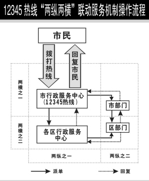 為了保證熱線順利開通提供優(yōu)質(zhì)服務(wù),有關(guān)方面還建立了“兩縱兩橫”聯(lián)動(dòng)服務(wù)機(jī)制!皟煽v”即市行政服務(wù)中心與各區(qū)行政服務(wù)中心之間的縱向聯(lián)系,市級(jí)熱線成員單位與區(qū)級(jí)熱線成員單位之間的縱向聯(lián)系;“兩橫”即市行政服務(wù)中心與市級(jí)熱線成員單位的橫向聯(lián)系,各區(qū)行政服務(wù)中心與區(qū)級(jí)熱線成員單位之間的橫向聯(lián)系。