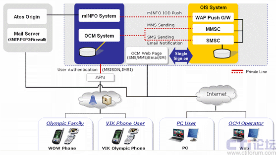 奧運社區(qū)傳送服務,簡稱OCM,是用于競賽運營的移動通信服務機構(gòu),OCM的服務包括使用短信和彩信的信息群發(fā)以及使用即時信息和電子郵件的社區(qū)通信服務。屆時,三星北京2008WOW將根據(jù)用戶的喜好設(shè)置提供個性化的奧運信息,分為競賽、新聞、信息、火炬接力和“我的WOW”——每個WOW用戶可以根據(jù)自身的喜好定制特殊的信息服務。