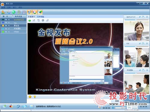 金視視頻會(huì)議系統(tǒng)(Kingsee Conference)是一款視頻會(huì)議+即時(shí)通訊(IM)的軟件,提供給用戶的是一個(gè)全面的、通用的多媒體通訊平臺(tái),用戶可以利用普通的PC機(jī)、標(biāo)準(zhǔn)的視頻采集設(shè)備、耳機(jī)和麥克風(fēng),實(shí)現(xiàn)基于Internet的虛擬會(huì)議,金視視頻會(huì)議(Kingsee Conference)可以提供多種級別的視頻會(huì)議解決方案,實(shí)現(xiàn)從桌面級到會(huì)議室級的不同應(yīng)用。與傳統(tǒng)的硬件視頻會(huì)議解決方案相比,用戶不需要投入昂貴的成本,就能夠?qū)崿F(xiàn)高質(zhì)量、高可靠性的音視頻通訊、協(xié)同工作、文檔共享、遠(yuǎn)程會(huì)議管理等多項(xiàng)功能,有效地節(jié)約時(shí)間和成本,并提高企業(yè)的工作效率。