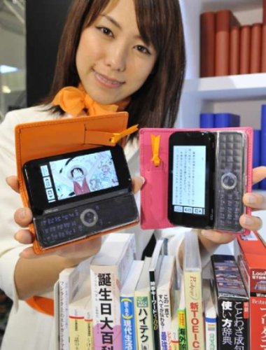 日本第二大電信服務(wù)商KDDI與東芝合作推出以“Biblio”命名的手機(jī),以電子書瀏覽器作為最大賣點(diǎn)。該機(jī)內(nèi)建7GB內(nèi)存,3.5吋觸摸式液晶顯示屏,外型及包裝設(shè)計(jì)都和Amazon Kindle相似,配備WIFI、510萬(wàn)像素鏡頭及電子辭典功能。