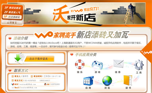 上海聯(lián)通在該網(wǎng)站特別設(shè)定“我家開(kāi)新店”版塊,為新店征名,同時(shí)尋求軟件開(kāi)發(fā)伙伴,并稱(chēng)包括不限于娛樂(lè)、游戲、應(yīng)用、工具、閱讀等類(lèi)別,一旦合作就可參與收益分成,最高可達(dá)70%。