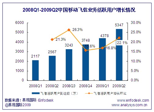 中移動飛信業(yè)務用戶規(guī)模穩(wěn)步增長