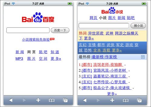 百度推出掌上百度、百度手機(jī)輸入法、百度快搜、百度地圖移動(dòng)版等產(chǎn)品后,如今又推出了百度Wap小說(shuō)搜索頻道。以后我們可以直接拿手機(jī)上百度看小說(shuō),不用麻煩先在電腦上搜索好并下載復(fù)制過(guò)來(lái),這給廣大用戶(hù)在線閱讀提供了方便。