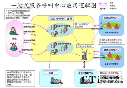 - 依托完善的呼叫中心技術(shù)平臺(tái),好醫(yī)生在國(guó)內(nèi)唯一的國(guó)家級(jí)醫(yī)藥產(chǎn)業(yè)基地——泰州“中國(guó)醫(yī)藥城”構(gòu)建完成了國(guó)內(nèi)首家具有100座席以上處理能力的醫(yī)藥衛(wèi)生領(lǐng)域的專業(yè)化呼叫中心。該呼叫中心企業(yè)具有多址分布、全國(guó)組網(wǎng)功能。座席組物理上既可以在北京(好醫(yī)生的呼叫中心總部),也可以在北京以外的任何地區(qū)(好醫(yī)生的呼叫中心分部);通過IP技術(shù),呼叫中心的各路話務(wù)統(tǒng)一由北京接入或呼出。