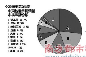 市場調(diào)研機構(gòu)易觀國際最新監(jiān)測數(shù)據(jù)顯示,中國智能手機市場2010年第2季度國內(nèi)銷售總量達(dá)1348.1萬部(不計黑手機和水貨手機),環(huán)比增長27.5%.在蘋果iOS與谷歌Android平臺沖擊下,Symbian合作伙伴在資源投入方面出現(xiàn)分化跡象,紛投蘋果、谷歌陣營,導(dǎo)致背后的諾基亞市場份額持續(xù)下滑。