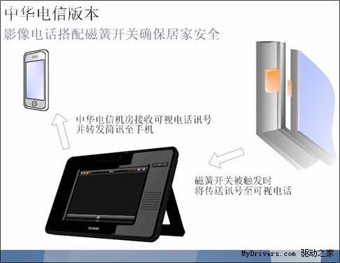 除多媒體服務(wù),AMOR8210內(nèi)建之千里眼服務(wù)更突破業(yè)界標準使其與磁簧開關(guān)整合提供居家安全嶄新服務(wù)。當磁簧開關(guān)被觸發(fā)告警時,AMOR8210攝影鏡頭將開啟錄像功能并上傳畫面且同步發(fā)送簡訊至行動電話通知使用者接著使用者可透過3G手機觀看錄像檔案或直接撥接AMOR8210進行實時監(jiān)控。