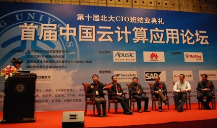CTI論壇(ctiforum)1月12日消息(記者 楊佳林):2011年1月9日,首屆中國云計算應(yīng)用論壇在北京大學(xué)英杰交流中心隆重舉行。本次論壇由北大信息化與信息管理研究中心、北大CIO班教務(wù)辦公室主辦,全國信準委SOA標準工作組、北達軟協(xié)辦,CIO時代網(wǎng)承辦。業(yè)界權(quán)威專家、北大CIO班學(xué)員、特邀企事業(yè)單位CIO、IT經(jīng)理等信息化負責人及知名IT廠商代表300余人圍繞云計算的產(chǎn)業(yè)鏈、云計算平臺與技術(shù)、云計算的應(yīng)用趨勢、云計算的安全問題、EA與云計算應(yīng)用等議題展開了深入的探討和交流。