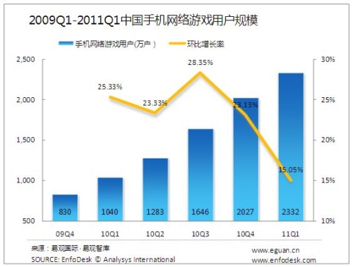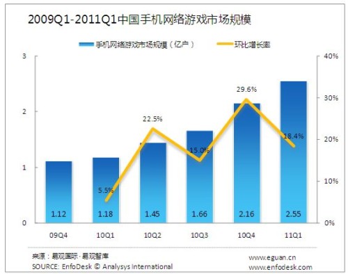 2011年第1季度中國(guó)手機(jī)網(wǎng)絡(luò)游戲市場(chǎng)規(guī)模達(dá)2.55億