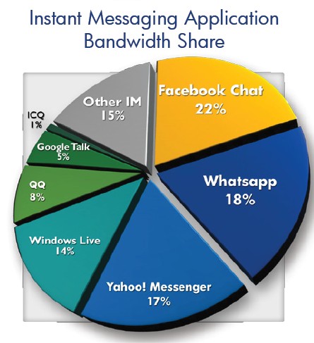 Allot發(fā)布的報告對移動通信網(wǎng)絡(luò)上的主流應(yīng)用流量進行了統(tǒng)計,下面是關(guān)于VOIP和即時通信流量的發(fā)展情況: