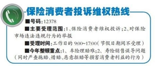據(jù)河北保監(jiān)局相關(guān)人士介紹,昨日是12378保險(xiǎn)消費(fèi)者投訴維權(quán)熱線開通的首日,已經(jīng)有保險(xiǎn)消費(fèi)者打進(jìn)電話,反映其在保險(xiǎn)消費(fèi)購(gòu)買當(dāng)中遇到的一些問(wèn)題。