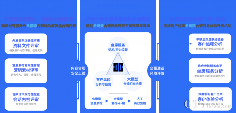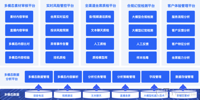 依托多項(xiàng)AI能力融合應(yīng)用,升級后的【多模態(tài)合規(guī)分析平臺(tái)】能處理對話數(shù)據(jù)、圖片、音頻和視頻等各種格式的信息,同時(shí)采用大小模型組合式AI合規(guī)檢查機(jī)制,對各個(gè)渠道的客戶互動(dòng)數(shù)據(jù)進(jìn)行聚合分析,實(shí)現(xiàn)大模型構(gòu)成坐席和客戶間全場景多模態(tài)數(shù)據(jù)檢測與分析,以及客戶體驗(yàn)升級。