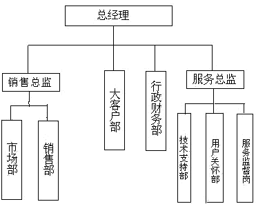 經(jīng)過討論,結(jié)合公司的實(shí)際情況,Z公司迅速采納了項目組提出的建議,并在CRM項目啟動大會上宣布項目開始實(shí)施。而且調(diào)整了組織結(jié)構(gòu),新的結(jié)構(gòu)如圖2所示。整個CRM項目分兩個階段實(shí)施,第一階段實(shí)現(xiàn)銷售業(yè)務(wù)的跟蹤監(jiān)控,以及部分市場信息的共享傳遞,第二階段再將公司的市場管理、服務(wù)管理、用戶關(guān)懷等業(yè)務(wù)流程納入整個系統(tǒng)。