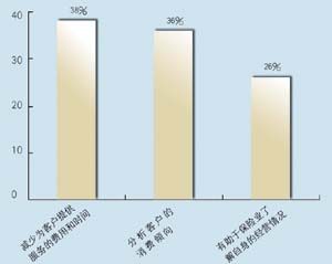 關(guān)于所應(yīng)用的CRM類型,有5家是呼叫中心,5家是分析型,7家是運(yùn)營型,2家是屬于大型企業(yè)CRM。其中13家擁有動(dòng)態(tài)客戶數(shù)據(jù)庫,占到68.4%。這其中又有42%利用數(shù)據(jù)庫作客戶記錄,26.3%作為客戶支持使用,15.7%用作統(tǒng)計(jì)分析,另有16%作為市場推廣。保險(xiǎn)公司與客戶聯(lián)系的方式,從重要性來看依次為:面對面\電話\網(wǎng)絡(luò)\傳真,這說明保險(xiǎn)公司對于與客戶進(jìn)行人性化交流的重視。在問到CRM的主要作用時(shí),有5家表示使用CRM有助于保險(xiǎn)業(yè)了解自身的經(jīng)營情況,幫助公司準(zhǔn)確地發(fā)現(xiàn)贏利客戶和具有贏利潛力的客戶,有7家認(rèn)為使用CRM有助于分析客戶的消費(fèi)傾向,有7家認(rèn)為使用CRM有助于優(yōu)化信息和資源管理。在問到是否愿意為像CRM系統(tǒng)這樣的咨詢或服務(wù)付費(fèi)時(shí),有11家表示愿意,占到57.8%。