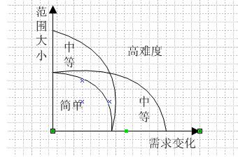 如對(duì)于一些成長(zhǎng)型的企業(yè),他們由于業(yè)務(wù)、客戶等等都處于一個(gè)成長(zhǎng)期,所以在項(xiàng)目的實(shí)施過程中,這個(gè)需求變化可能會(huì)比較頻繁。根據(jù)筆者的經(jīng)驗(yàn),一個(gè)成長(zhǎng)型的企業(yè),從需求提出到最后項(xiàng)目上線,中間可能50%以上的需求會(huì)進(jìn)行不同程度的調(diào)整。毋庸置疑,這就會(huì)給項(xiàng)目帶來不少的挑戰(zhàn)。從理論上說,實(shí)施顧問遇到這種情況,應(yīng)該建議企業(yè)先暫時(shí)擱置這個(gè)項(xiàng)目。等到需求穩(wěn)定了,再上這個(gè)項(xiàng)目。但是實(shí)施顧問往往不會(huì)這么做,因?yàn)檫@會(huì)影響到他們自己企業(yè)的業(yè)績(jī)。為此實(shí)施顧問在遇到這種情況的時(shí)候,只有退而求其次了。即當(dāng)需求變化比較大的時(shí)候,只有通過縮小項(xiàng)目的范圍,來減少需求的絕對(duì)數(shù)量。需求的絕對(duì)數(shù)量減少了,那么需求的變化量也會(huì)降低。從而可以達(dá)到降低項(xiàng)目難度的目標(biāo),可以將項(xiàng)目的難度設(shè)置在中等難度這個(gè)級(jí)別。