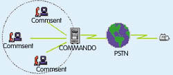COMMANDO系統(tǒng)提供與其他同類系統(tǒng)之間的互連互通功能,通過選擇不同的模塊可以輕松實現(xiàn)與CISCO、CLARENT、COMMSENT、WHEREVER等VoIP系統(tǒng)之間的無縫銜接。