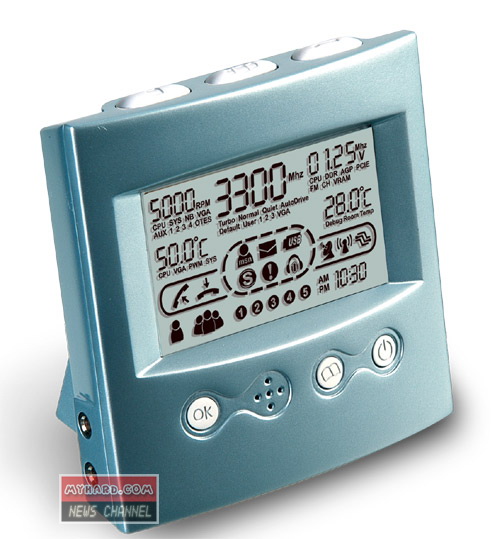 這個(gè)裝置,其實(shí)是一項(xiàng)早期工具的衍生產(chǎn)品。早在2004年,這個(gè)具有獨(dú)立顯示屏的小東西被開發(fā)出來,用以控制電腦的超頻設(shè)定并監(jiān)控系統(tǒng)的效能,F(xiàn)在這個(gè)在下周起于各大通路都買得到的新機(jī)種已納入Skype話務(wù)管理功能,使用者可直接把頭戴式耳機(jī)接到這個(gè)小時(shí)鐘上,one-touch輕輕一按,便可立即進(jìn)行接通電話、速簡撥號(hào)及電話會(huì)議。