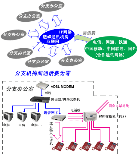 某跨國公司A(因涉及客戶商業(yè)保密原因,故隱去真實(shí)名稱),在中國目前共有40多家分公司及辦事機(jī)構(gòu)。其不同分公司及辦事機(jī)構(gòu)之間需要大量的語音通信支持業(yè)務(wù)往來,話音通信主要是通過傳統(tǒng)的電話方式,即不同機(jī)構(gòu)將使用的不同類型的PBX(數(shù)字程控交換機(jī))接入本地電話公網(wǎng),通過電信公司的固定長(zhǎng)途網(wǎng)進(jìn)行通話。與此同時(shí), A公司各不同機(jī)構(gòu)都有與遍布各地的用戶經(jīng)常溝通的需求,此種通信方式使得整個(gè)A公司要支付巨額電話費(fèi)用。更重要的是,A公司目前此種通信方式不便于整個(gè)語音通信系統(tǒng)的統(tǒng)一管理及維護(hù),更不利于整個(gè)公司以一個(gè)統(tǒng)一的公司形象對(duì)外。