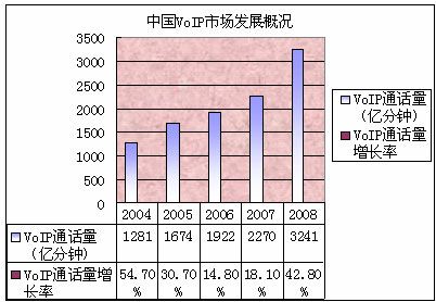 到2006年,中國IP電話的市場已經到達了1922億分鐘,市場的發(fā)展可謂如火如荼。龐大的市場吸引了國內很多公司的參與, VoIP市場也變得越來越激烈。VoIP市場主要呈現以下的發(fā)展趨勢: