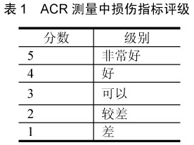 在ACR測(cè)量中,收聽者按照從1~5的5級(jí)損傷指標(biāo)對(duì)一系列音頻文件進(jìn)行分級(jí)(見表1)。