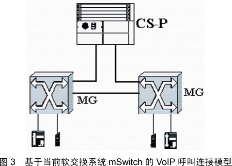 針對(duì)第一類的連接通話情況,可以用建立如下的通話連接模型,如圖3所示。該圖是整個(gè)軟交換系統(tǒng)的簡(jiǎn)化圖,具體的細(xì)節(jié)沒有描述。