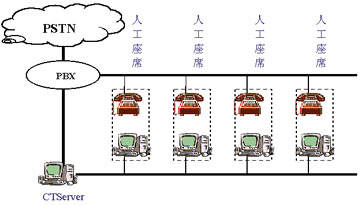 PBX毫無(wú)疑問(wèn)是CTI的又一次發(fā)展,它不再是兩網(wǎng)簡(jiǎn)單的加,它徹底地去掉了一套昂貴的PBX網(wǎng)絡(luò)及兩網(wǎng)連接設(shè)備,電話(huà)網(wǎng)絡(luò)僅成為服務(wù)對(duì)象接入的一個(gè)手段,這種系統(tǒng)結(jié)構(gòu)的設(shè)計(jì)使得呼叫中心的成本至少降低了一半,同時(shí)由于開(kāi)放的