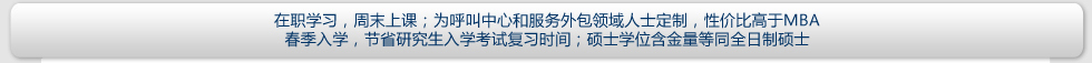 | 報名條件 | 擁護中國憲法,遵守法律、法規(guī),品行端正,身體健康,并能堅持在職學習; 大專及以上學歷,旨在提高本人專業(yè)素質(zhì)和學歷層次的 社會在職人士均可報名;擇優(yōu)錄取。 呼叫中心、服務外包領域的中高級從業(yè)者,英語基礎良好的人士將獲得優(yōu)先錄取機會。 |