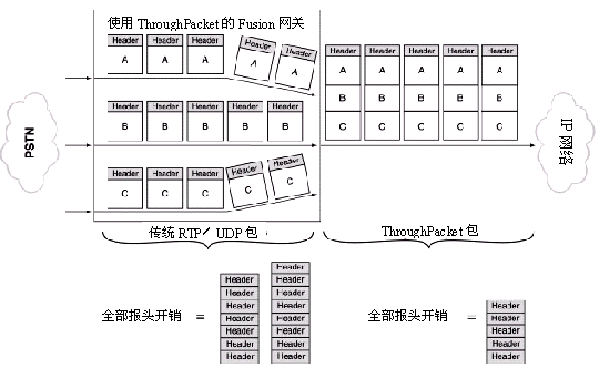 Clarent ThroughPacket本質(zhì)上是一種中繼技術(shù),它把來(lái)自多個(gè)通道的數(shù)據(jù)連接成一個(gè)單獨(dú)的包。這明顯地減少了網(wǎng)關(guān)每時(shí)每刻都要傳送的包數(shù)量。由于發(fā)送更少的包穿過(guò)網(wǎng)絡(luò),Clarent