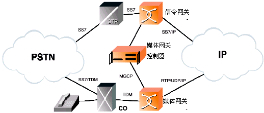IP電話(huà)技術(shù)把話(huà)音、傳真數(shù)據(jù)和IP網(wǎng)絡(luò)無(wú)縫地集合到了一起。因特網(wǎng)工程任務(wù)組(IETF)已經(jīng)建議了一個(gè)功能模型,來(lái)橋接包交換的IP網(wǎng)和電路交換的PSTN,這些橋接設(shè)備就是:信令網(wǎng)關(guān)(SG)、媒體網(wǎng)關(guān)(MG)、和媒體網(wǎng)關(guān)控制器(MGC)。(請(qǐng)參看圖1)。MGC通常又被叫做軟交換,正如它的名字表達(dá)的意思一樣,MGC控制著媒體從電路交換領(lǐng)域經(jīng)過(guò)媒體網(wǎng)關(guān)的網(wǎng)絡(luò)傳送到基于包的領(lǐng)域。呼叫控制消息首先送達(dá)SS7信令網(wǎng)關(guān),轉(zhuǎn)換成網(wǎng)關(guān)網(wǎng)絡(luò)中的MGCP(媒體網(wǎng)關(guān)控制協(xié)議)來(lái)控制媒體流,完成呼叫的控制、接續(xù)。話(huà)音、傳真和圖象介質(zhì)都是從PSTN交換網(wǎng)通過(guò)這些新一代的媒體網(wǎng)關(guān)連接到IP網(wǎng)的。