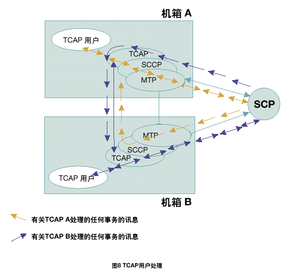 TCAP用戶,如GSM-MAP、IS41和INAP等,與它們使用的TCAP層緊密地結(jié)合。在一個(gè)多TCAP系統(tǒng)中,TCAP用戶之間共享事務(wù),在雙TCAP系統(tǒng)中平均分配。在TCAP層完成了接受到的訊息針對(duì)相應(yīng)TCAP狀態(tài)機(jī)的處理;因此,在TCAP用戶層不需要額外的處理。參見(jiàn)圖8。