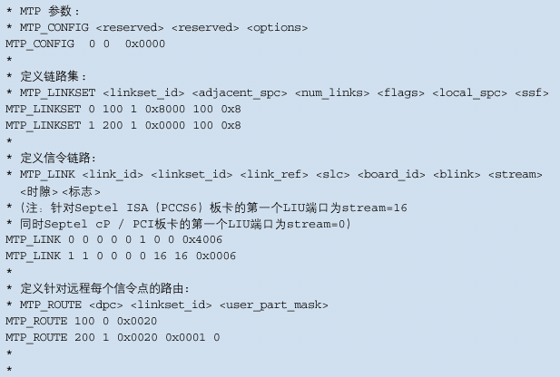 每一目標(biāo)路由(包括相鄰節(jié)點(diǎn))都應(yīng)該指明兩個(gè)鏈路集。主要的是連接本地MTP到相鄰節(jié)點(diǎn)的鏈路集的標(biāo)識(shí)符。參數(shù)應(yīng)該用來(lái)表示連接共享一個(gè)本地點(diǎn)代碼的兩個(gè)MTP3層的鏈路集。參數(shù)應(yīng)該設(shè)為0x0001,表明第二個(gè)鏈路集已經(jīng)被指定,并且只有在通過(guò)主要鏈路集無(wú)法路由到目標(biāo)節(jié)點(diǎn)的情況下,才可使用這個(gè)鏈路集來(lái)路由傳輸流量。所有其它參數(shù)的含義都與用戶手冊(cè)中描述的單MTP設(shè)置中的參數(shù)相同。