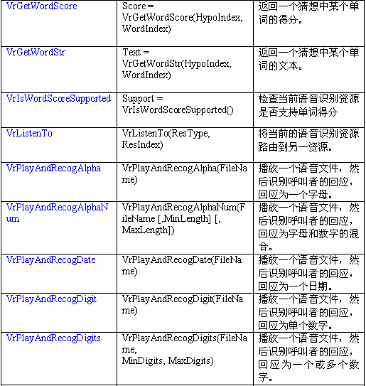 語音識(shí)別資源把呼叫者的語音轉(zhuǎn)變?yōu)槲谋咀址R粋(gè)VR資源可以對(duì)一個(gè)語音流數(shù)據(jù)(來自一中繼或會(huì)議資源)進(jìn)行識(shí)別。