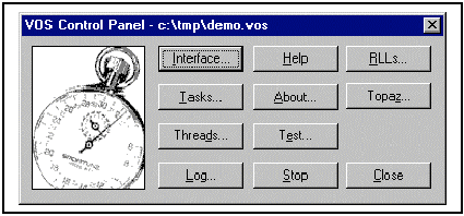 VOS啟動(dòng)時(shí),用戶界面是一個(gè)稱為VOS控制面板(VOS Control Panel)的對(duì)話框。VOS對(duì)話框如下所示: